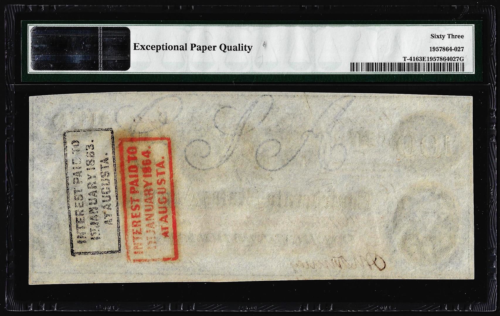 1862 $100 Confederate States of America Note T-41 PMG Choice Uncirculated 63EPQ
