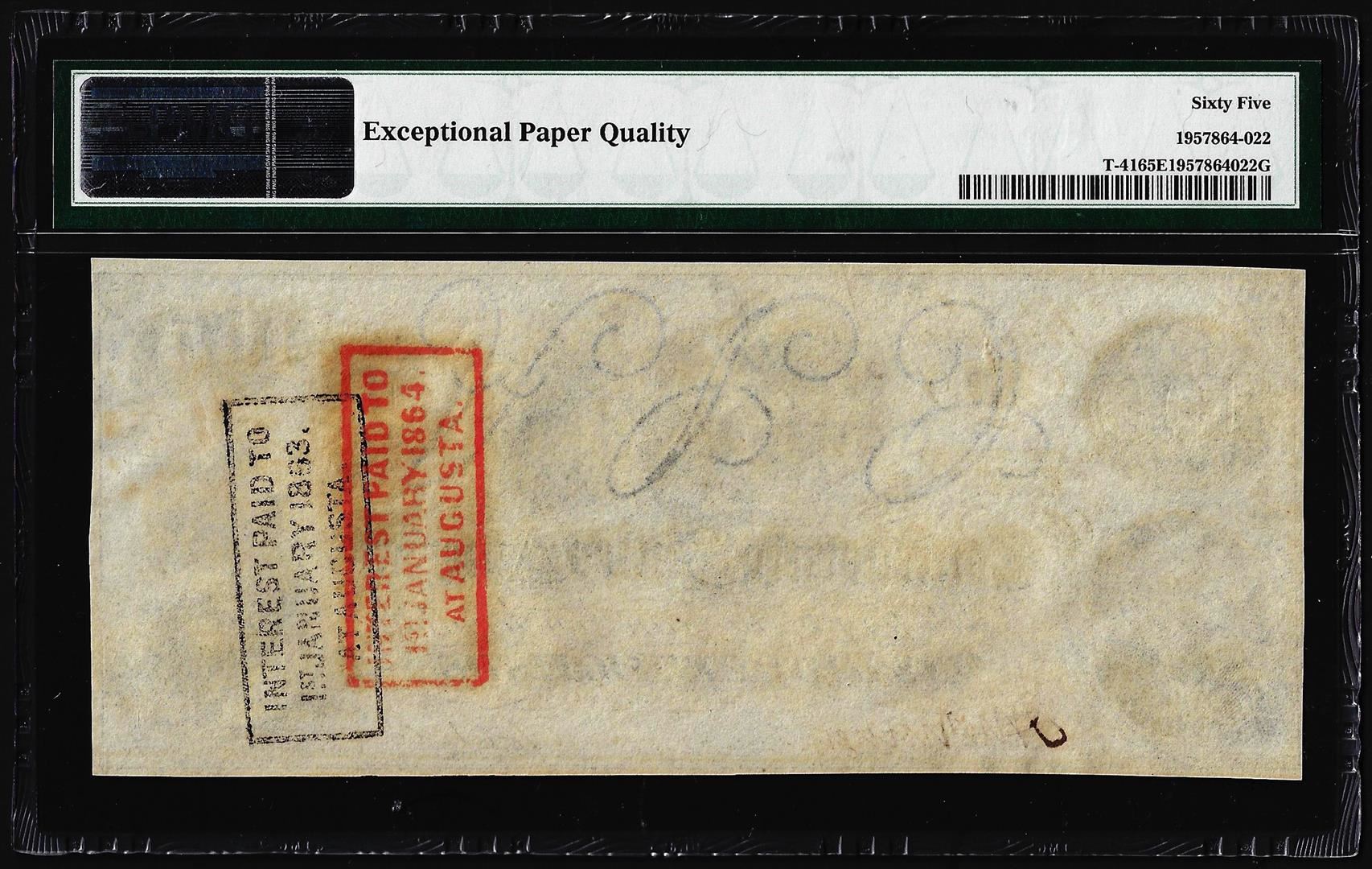 1862 $100 Confederate States of America Note T-41 PMG Gem Uncirculated 65EPQ