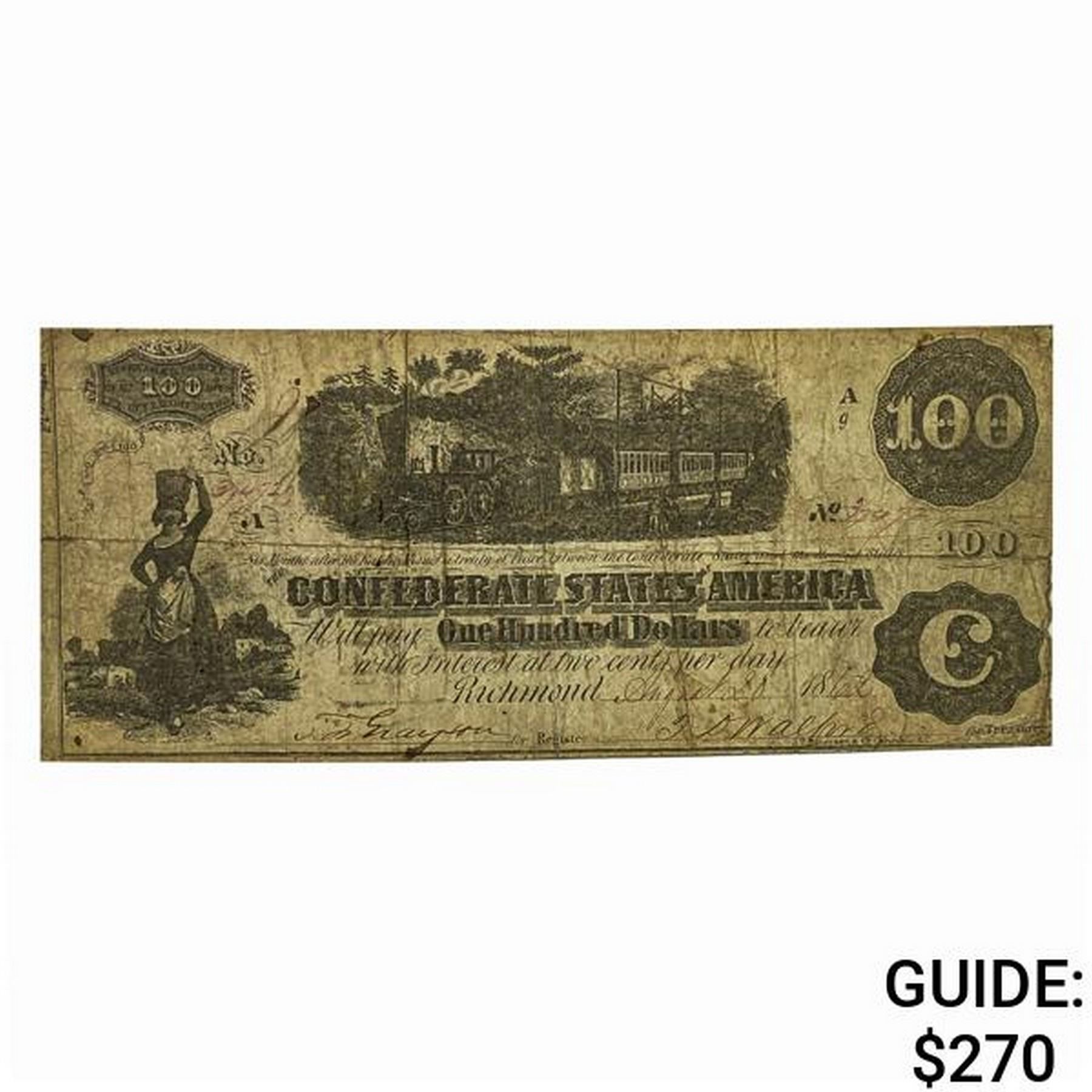 1862 $100 Confederate States of America Note