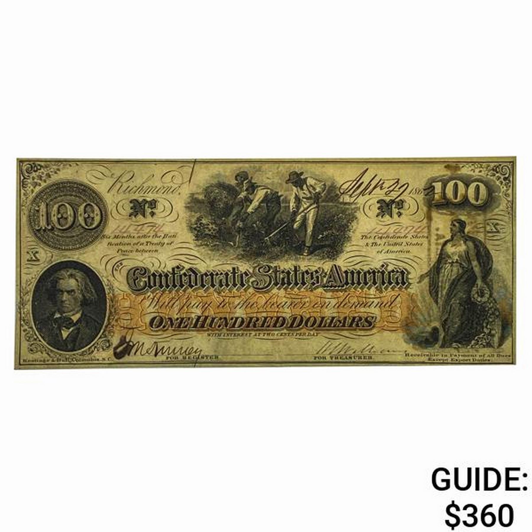 1862 $100 Confederate States of America Note