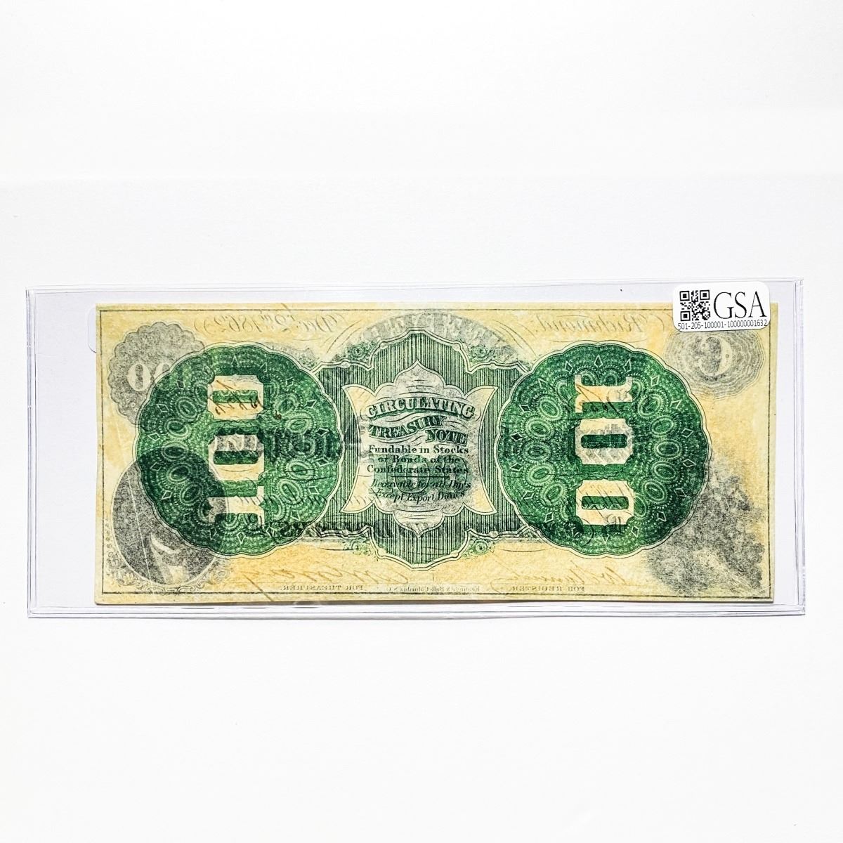 f. Notes sold referencing a third-party grading service are sold “AS IS” without any express or implied warranty, except for guarantee by GSA that they are genuine. Grading, condition or other attributes of any Product may have a material effect on its value and the opinion of others, including third-party grading services such as PCGS Currency and PMG may differ with that of GSA. GSA shall not be bound by any prior or subsequent opinion, determination, or certification by any grading service. Bidders specifically waive any claim to right of return of any Product because of the opinion, determination, or certification, or lack thereof, by any grading service. Certain warranties may be available from the grading services and Bidders are referred to them for further details: Paper Money Guaranty (PMG), PO Box 4711, Sarasota, FL 34230; PCGS Currency, PO Box 10470, Peoria, IL 61612-0470; PCGS Gold Shield, PO Box 9458, Newport Beach, CA 92658. Third-party graded notes are not returnable for any reason whatsoever.