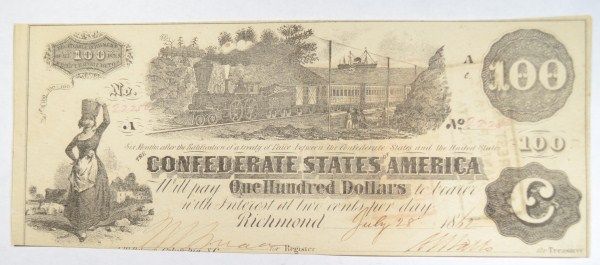Stamped on back interest paid 1863-64-65 Please read the terms and conditions before bidding on any item in our auctions