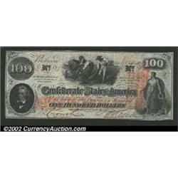 1862 $100 J.C. Calhoun on left; Slaves weeding Cotton in center; Confederacy Personified on right, T-41, AU.