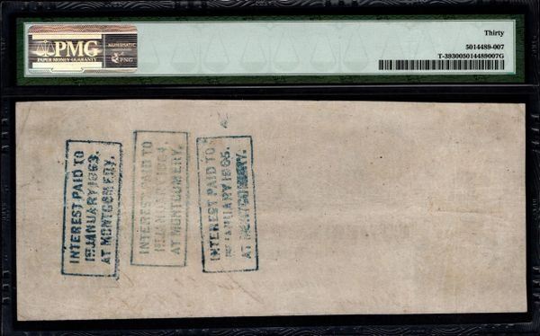 One 1862 $100 T-39 Confederate PMG 30.