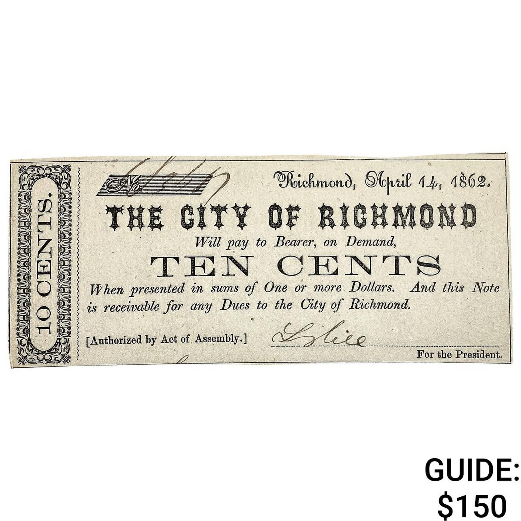 1862 10C City of Richmond Fractional Note
