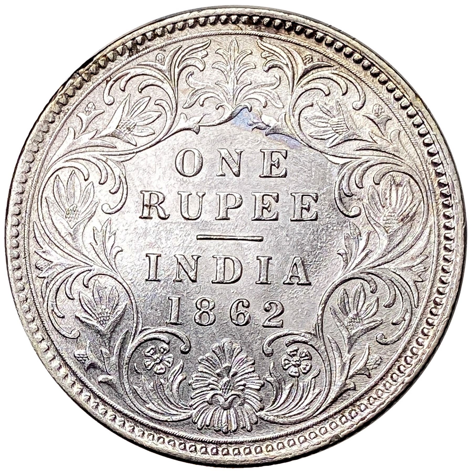 1862 1862 Silver India One Rupee MS