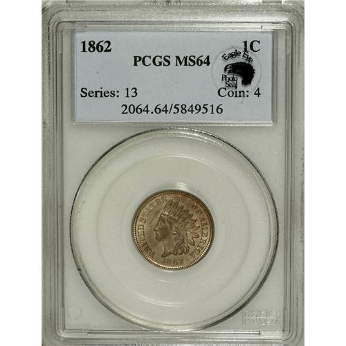 1862 1C MS64 PCGS. Eagle Eye Photo Seal included.