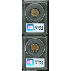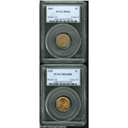<B>1862 1C MS64 PCGS,</B></I> reddish-tan patina overlays somewhat subdued surfaces; and a <B>1925 MS65 Red PCGS,</B></I> lustrous coppery-gold color. 2 Coins Lot:5198