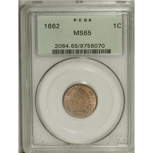 <B>1862<1C> MS65 PCGS.</B></I> A beautiful Gem that has pleasing sharpness and no mentionable marks. Carbon is also inconsequential. Certified in a green label holder.