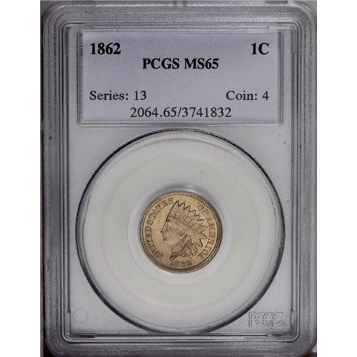 <B>1862<1C> MS65 PCGS.</B></I> Strong luster underlies the golden-tan surfaces. Nicely struck, with a few tiny unobtrusive flecks on the obverse.