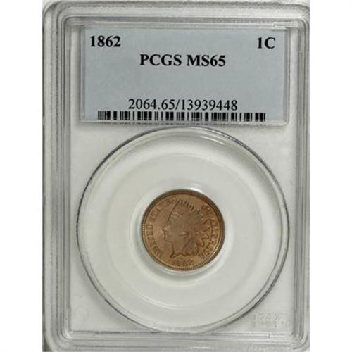 <B>1862 1C MS65 PCGS.</B></I> Sharply struck with lovely rose and salmon surfaces that show a touch of pumpkin-orange at the peripheries. The fields of this Civil War-era Gem are exquisitely preserved.<BR><BR><B>Coin Engraver:</B> James B. Longacre<BR><BR><b>Shipping:</b> Coins & Currency (<a target="_blank" href="http://www.heritageauctions.com/common/shipping.php">view shipping information</a>)