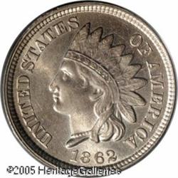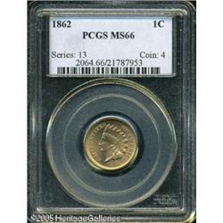 1862 1C MS66 PCGS. Bright, satiny luster rolls acr