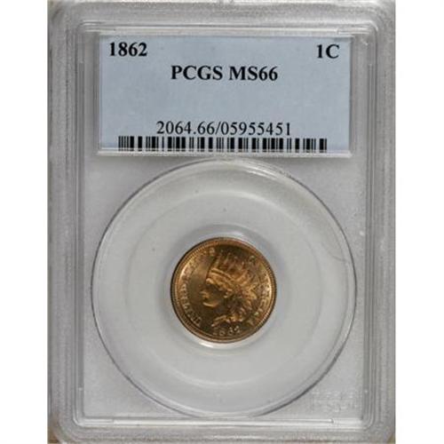<B>1862 1C MS66 PCGS.</B></I> This is a simply splendid Premium Gem example from the first year of the copper-nickel (also called the Oak Wreath With Shield) type of Indian cent. Well struck, lustrous, and virtually unmarked, with pleasing golden-tan coloration. According to <I>A Guide Book of United States Type Coins</B></I> (2005): "For reasons that are not clear today, Mint Director James Ross Snowden found the laurel wreath reverse of the 1859 cent to be unsatisfactory and directed that patterns be made for a new style. In 1860, this new style became the standard." Population: 49 in 66, 7 finer (6/07). <BR><BR><b>Shipping:</b> Coins & Currency (<a target="_blank" href="http://www.heritageauctions.com/common/shipping.php">view shipping information</a>)
