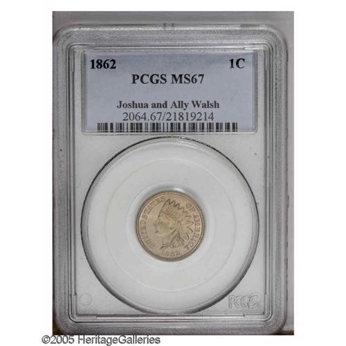 1862 1C MS67 PCGS. Booming luster, an unimprovable str 1862[1C] MS67 PCGS.