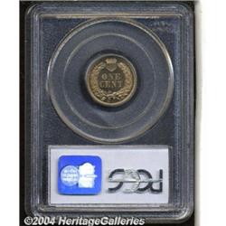 <B>1862<1C> PR65 Cameo PCGS.</B></I> Just 550 proofs of this date were originally struck, with many of those being melted after going unsold. This glittering golden-tan specimen has unfathomably deep mirrored reflectivity and the devices show considerable mint frost which provides a noticeable cameo contrast on each side. Population: 11 in 65, 16 finer (3/04). <BR><BR><B>Important notice:</B> Heritage usually auctions material at the rate of 200-250 lots per hour. On some occasions eBay Live bid software or the Internet may not be able to keep up with the pace of the auction. We recommend placing a realistic absentee bid now as insurance to avoid disappointment. Occasionally the auctioneer may eliminate or reject an eBay Live bid, and the auctioneer may also reopen a lot after the close of the eBay live bidding (usually because we missed an audience bid), and may reject your bid even if it shows you as the winning bidder. By bidding via eBay Live, you agree that Heritage may award the lot to another bidder at its sole discretion under the circumstances described above or any other reasonable circumstances. Since eBay bids are not shown to us until we open the lot on the floor, we treat those bids just like floor bids. In most cases the floor responds before the eBay bid is presented to us, due to Internet lag time, so for consistency we have made it a policy that floor bids are always considered first over tie eBay live bids. Also please note that all Heritage lots purchased through eBay Live carry a 20% Buyer's Premium. Please make sure you read the Terms and Conditions before you bid.