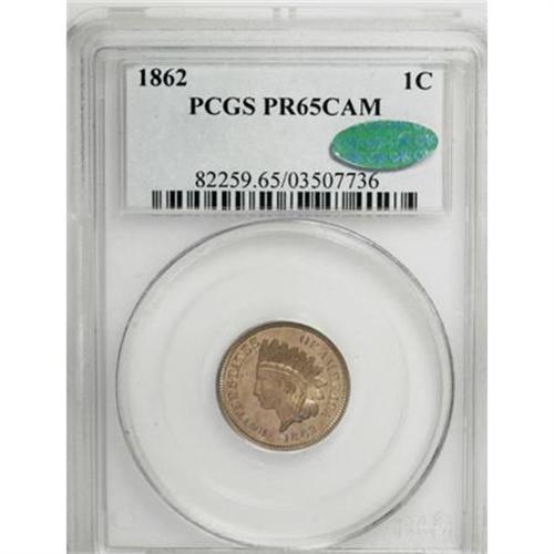 <B>1862 1C PR65 Cameo PCGS. CAC.</B></I> Lovely deep golden-tan and antique-gold coloration adorns the well preserved surfaces of this Gem proof copper-nickel cent. The design elements are exactingly struck and only minor marks and spots on the obverse prevent an even finer grade. From a reasonably low mintage of 550 pieces, but still the most available copper-nickel cent in proof format. Population: 16 in 65 Cameo, 20 finer (11/07). <BR><BR><b>Shipping:</b> Coins & Currency (<a target="_blank" href="http://www.heritageauctions.com/common/shipping.php">view shipping information</a>)