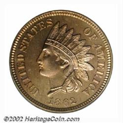 1862 1C PR66 Cameo PCGS. A splendid, deeply mirrored proof that is light in color with subtle variations of rose and lilac over the bright reddish-orange surfaces. Considerable contrast is seen between the fields and devices on each side. Nearly free from any post-striking impairments. Population: 5 in 66, 2 finer (9/02). Important notice: We expect to be auctioning lots at the rate of 200-250 per hour. Sometimes eBay Premier live bid software cannot keep up with that pace, so we strongly recommend that you place a realistic proxy bid now as insurance to avoid disappointment. Also please note that all Heritage/CAA lots purchased through eBay Premier carry a 20% Buyer's Premium. Please make sure you read the Terms and Conditions.