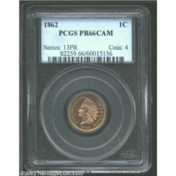 1862 1C PR66 Cameo PCGS. A splendid, deeply mirrored proof that is light in color with subtle variat