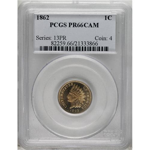<B>1862 1C PR66 Cameo PCGS.</B></I> Boldly struck with lovely tan-gold color and deeply-mirrored, lightly toned fields. Excellent field-motif contrast is noted on both sides. A number of light flyspecks are scattered over the obverse, but there are no apparent handling marks. A tiny planchet flaw (as struck) rests just above the E in CENT, and a couple of faint sprays of die rust (as struck) are seen in the reverse field. Population: 16 in 66 Cameo, 3 finer (3/07).<BR><BR><b>Shipping:</b> Coins & Currency (<a target="_blank" href="http://www.heritageauctions.com/common/shipping.php">view shipping information</a>)