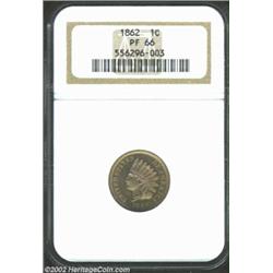 1862 1C PR66 NGC. We do not know exactly how many proof Indian Cents emerged from the presses at the