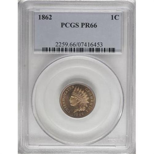 <B>1862 1C PR66 PCGS.</B></I> The proof mintage is unknown, but the Breen estimate of 550 pieces is generally accepted and repeated in the <I>Guide Book. </B></I>Nonetheless, the proof Copper-Nickel cent issues are scarce and desirable. This example boasts considerable field-device contrast, with sunset-orange surfaces that show no visible impairments, although trivial and infrequent carbon appears under a loupe. Only a single piece grades higher at PCGS (12/07).<BR><BR><B>Coin Engraver:</B> James B. Longacre<BR><BR><b>Shipping:</b> Coins & Currency (<a target="_blank" href="http://www.heritageauctions.com/common/shipping.php">view shipping information</a>)
