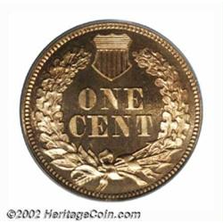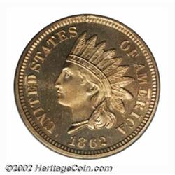 1862 1C PR67 Cameo PCGS. A second, and even finer Cameo representative of this desirable copper-nickel proof Cent, the glorious surfaces would stand for nothing less than a Superb Gem grade. There is not a single distracting blemish, and the shimmering fields form a splendid backdrop to the crisp, fully brought up devices. A few isolated swirls of orange tinged iridescence interrupt the otherwise honey-tan coloration. PCGS reports only two 1862 Indian Cents at the PR67 Cameo grade level, and, not surprisingly, there are none finer (9/02). One should be able to trace the pedigree of this important specimen by a small, out-of-the-way planchet flaw (as produced) at 12 o'clock on the obverse rim. Important notice: We expect to be auctioning lots at the rate of 200-250 per hour. Sometimes eBay Premier live bid software cannot keep up with that pace, so we strongly recommend that you place a realistic proxy bid now as insurance to avoid disappointment. Also please note that all Heritage/CAA lots purchased through eBay Premier carry a 20% Buyer's Premium. Please make sure you read the Terms and Conditions.
