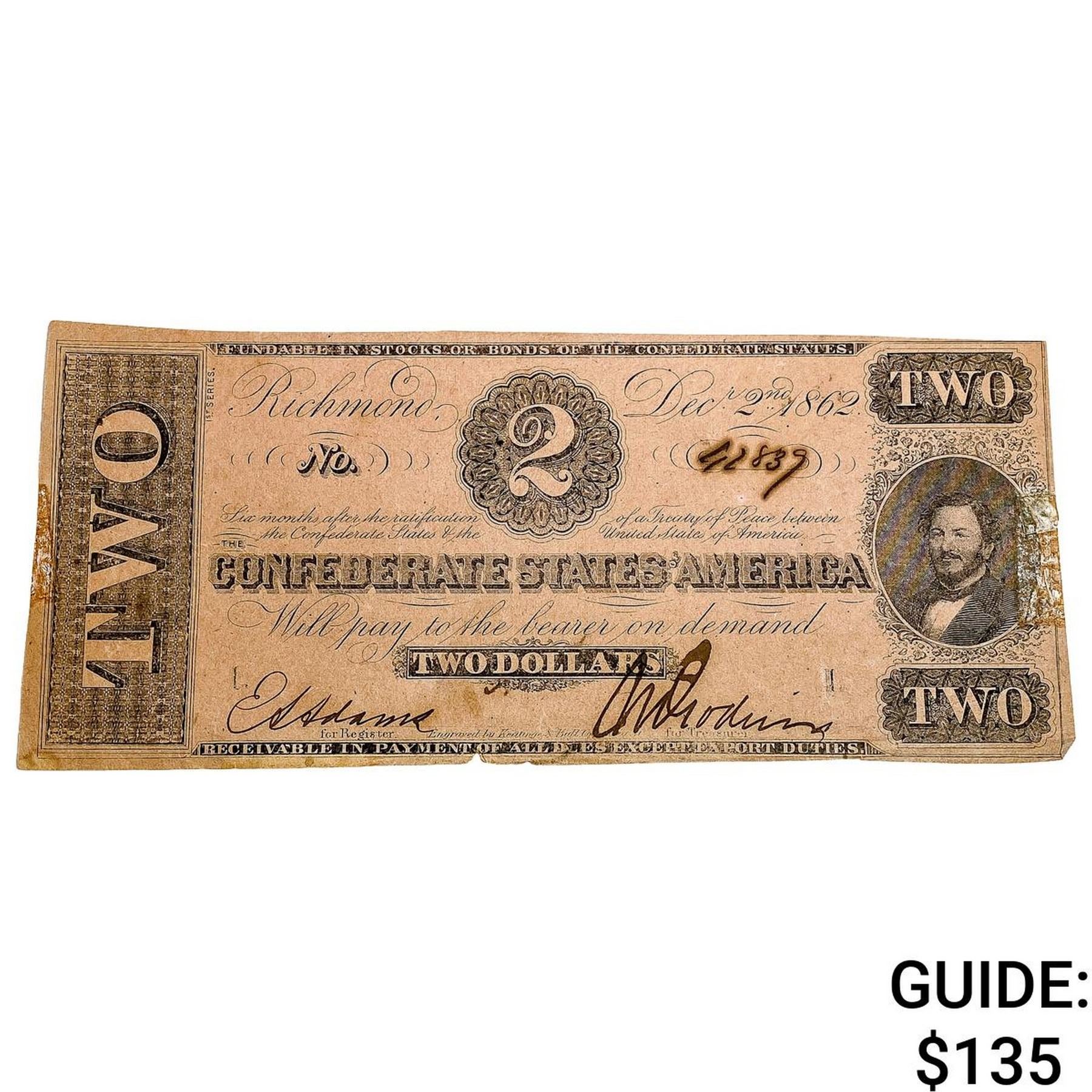 1862 $2 Confed. States of America Note-Richmond 4