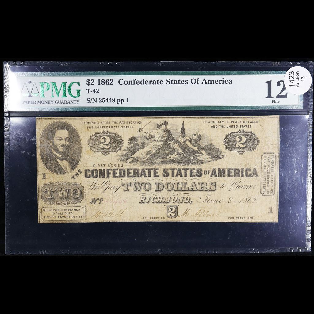 1862 $2 Confederate Note, T42 Graded f12 By PMG.