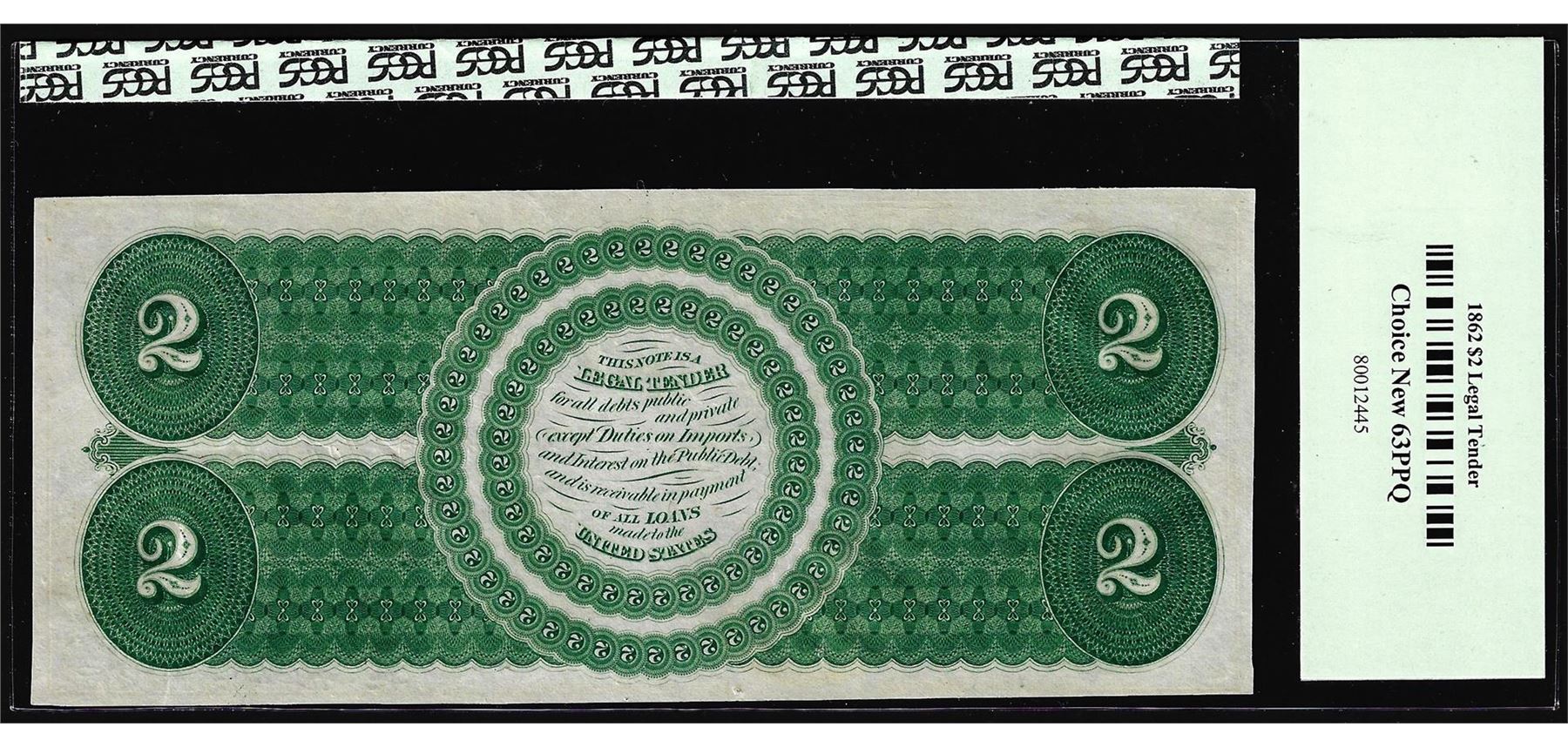 One 1862 $2 Legal Tender Note Fr. 41a PCGS Choice New 63PPQ. PCGS Graded.
