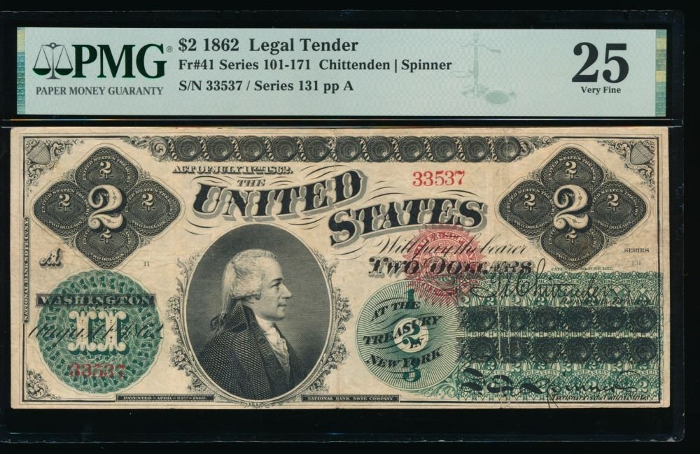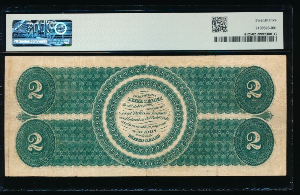 One 1862 $2 Legal Tender Note PMG 25.