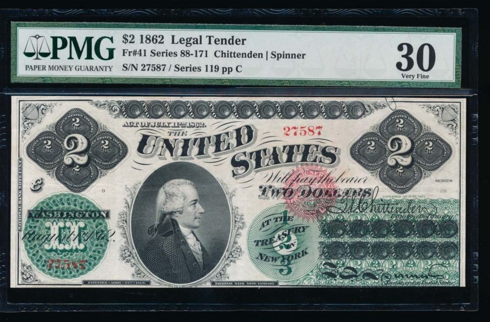 One 1862 $2 Legal Tender Note PMG 30.