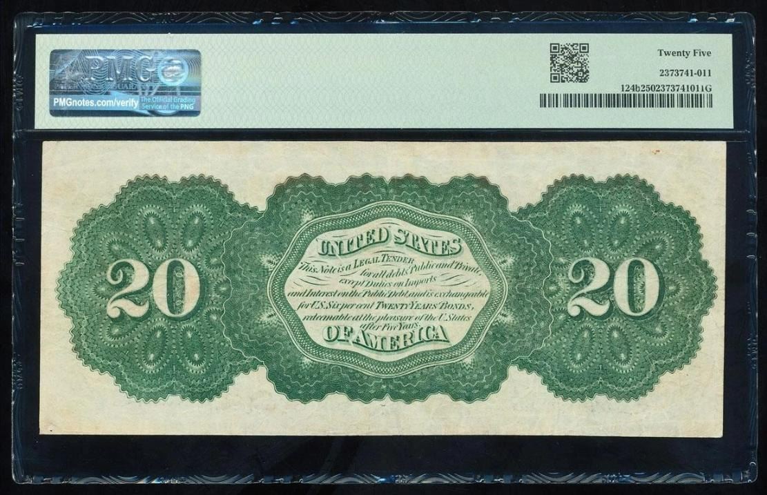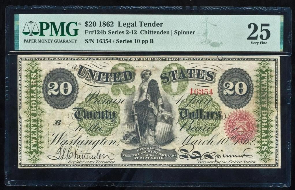 One 1862 $20 Legal Tender Note PMG 25.