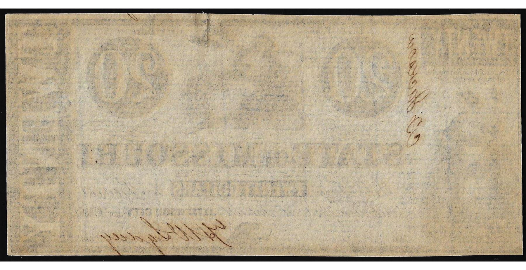 One 1862 $20 State Of Missouri Jefferson City Obsolete Note.