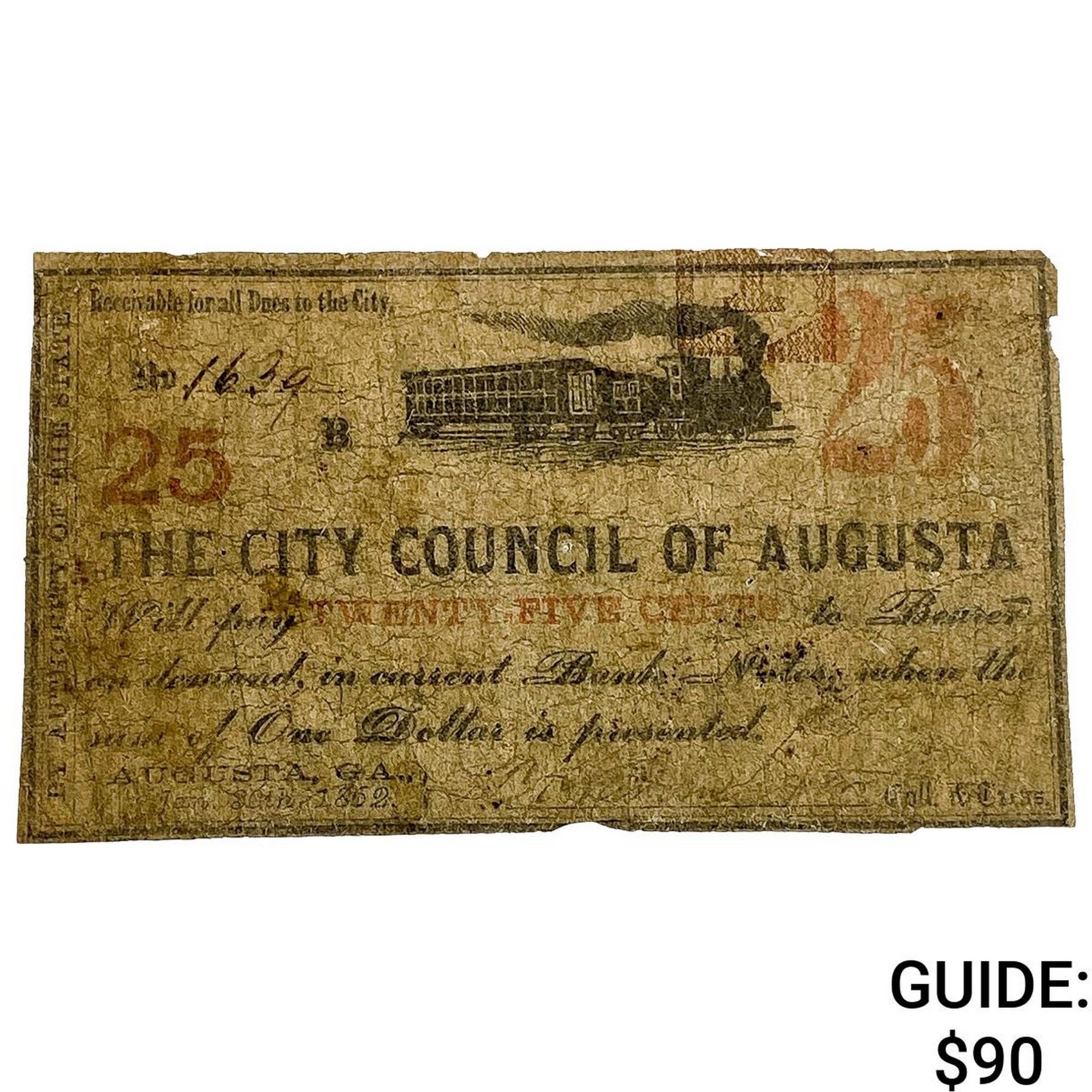 1862 25C City Council Of Augusta Note 4
