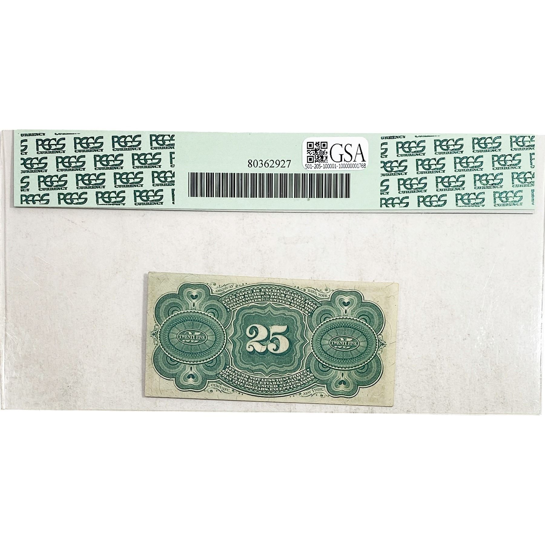 1862 25C Fourth Issue Fractional Currency PCGS 63 PPQ