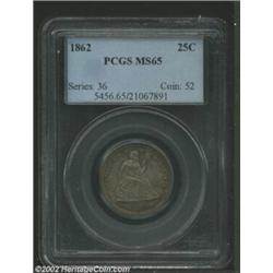1862 25C MS65 PCGS. The 1862 is a scarcer issue but it is not quite as elusive as later dates struck