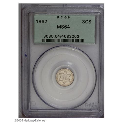 1862 3CS MS64 PCGS. This Civil War issue possesses whi 1862[3CS] MS64 PCGS.