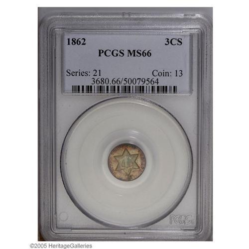 1862 3CS MS66 PCGS. A beautiful, blatantly original ex 1862[3CS] MS66 PCGS.