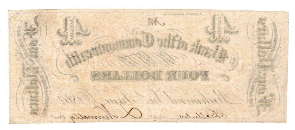 One 1862 $4 The Bank of the Commonwealth Obsolete Note.
