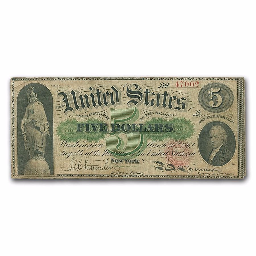 1862 $5.00 Legal Tender Alexander Hamilton XF, RARE FIND CIVIL WAR NOTE!