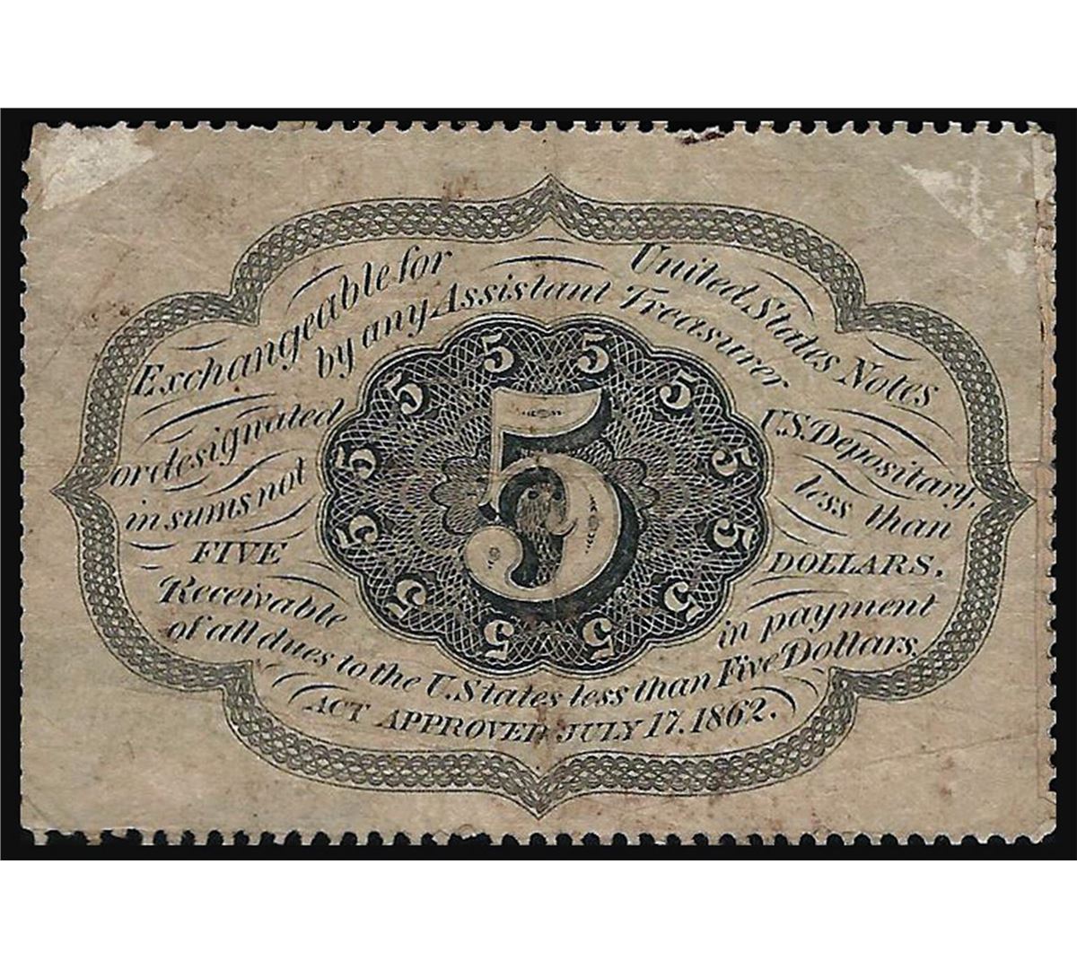 1862 5 Cent No Mono w/ Perforated Edges 1st Issue Fractional Note
