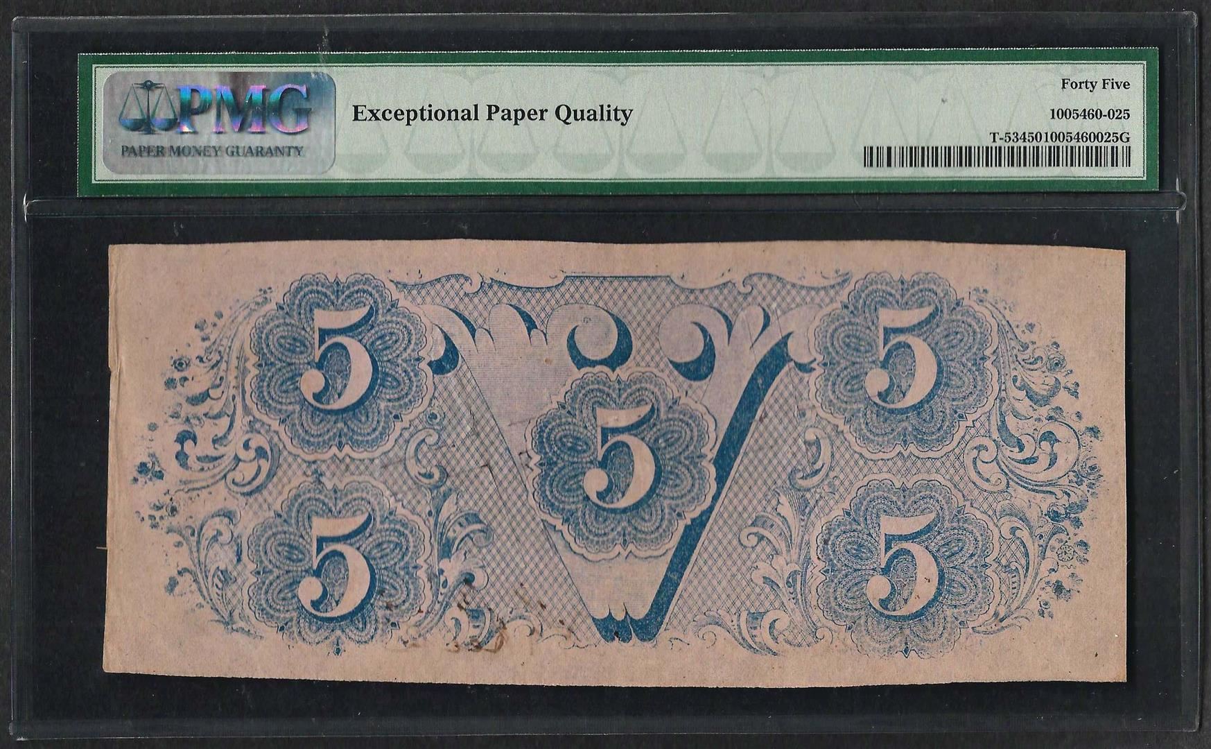 1862 $5 Confederate State of America Note T-53 PMG Choice Extremely Fine 45EPQ