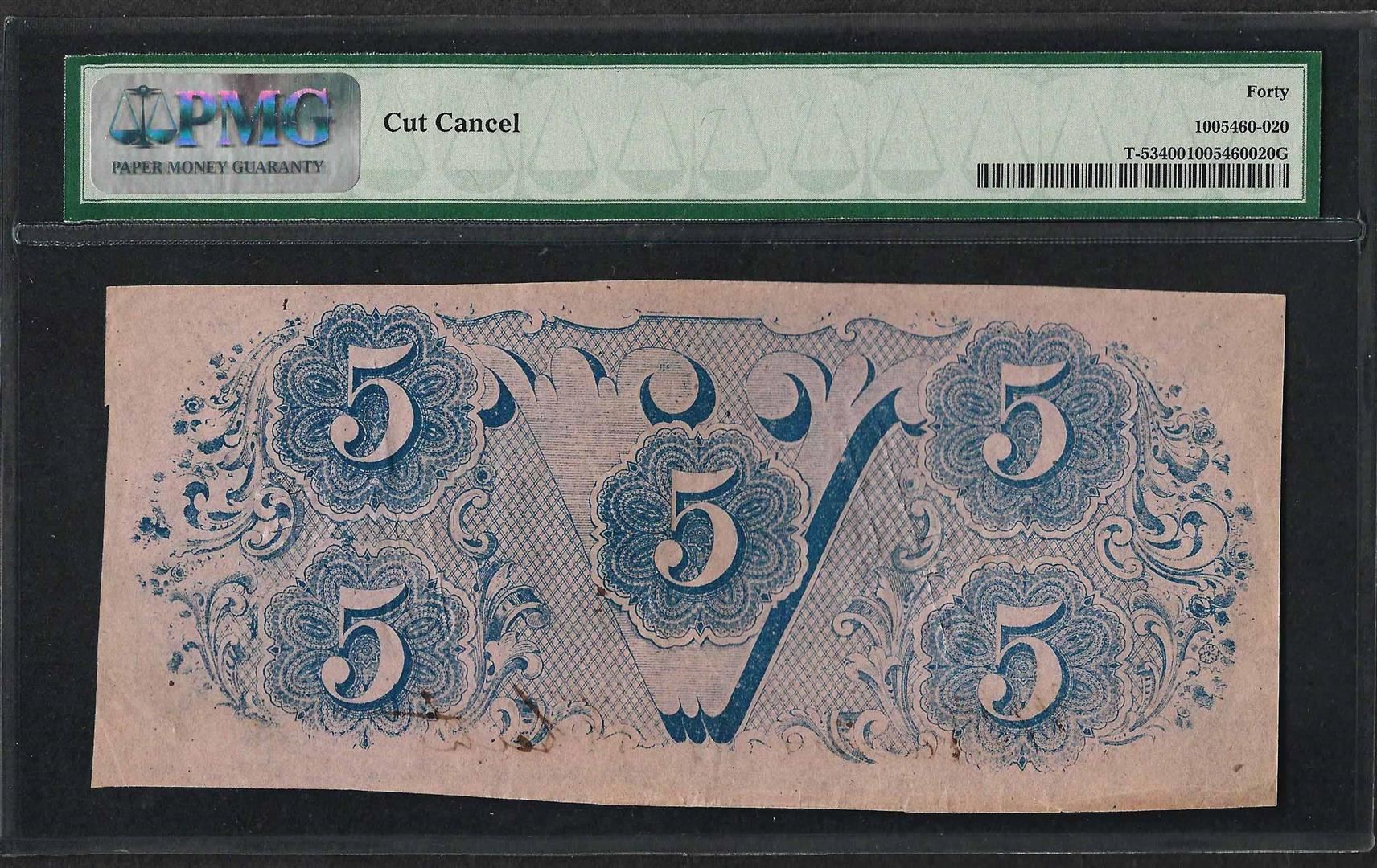 1862 $5 Confederate State of America Note T-53 PMG Extremely Fine 40