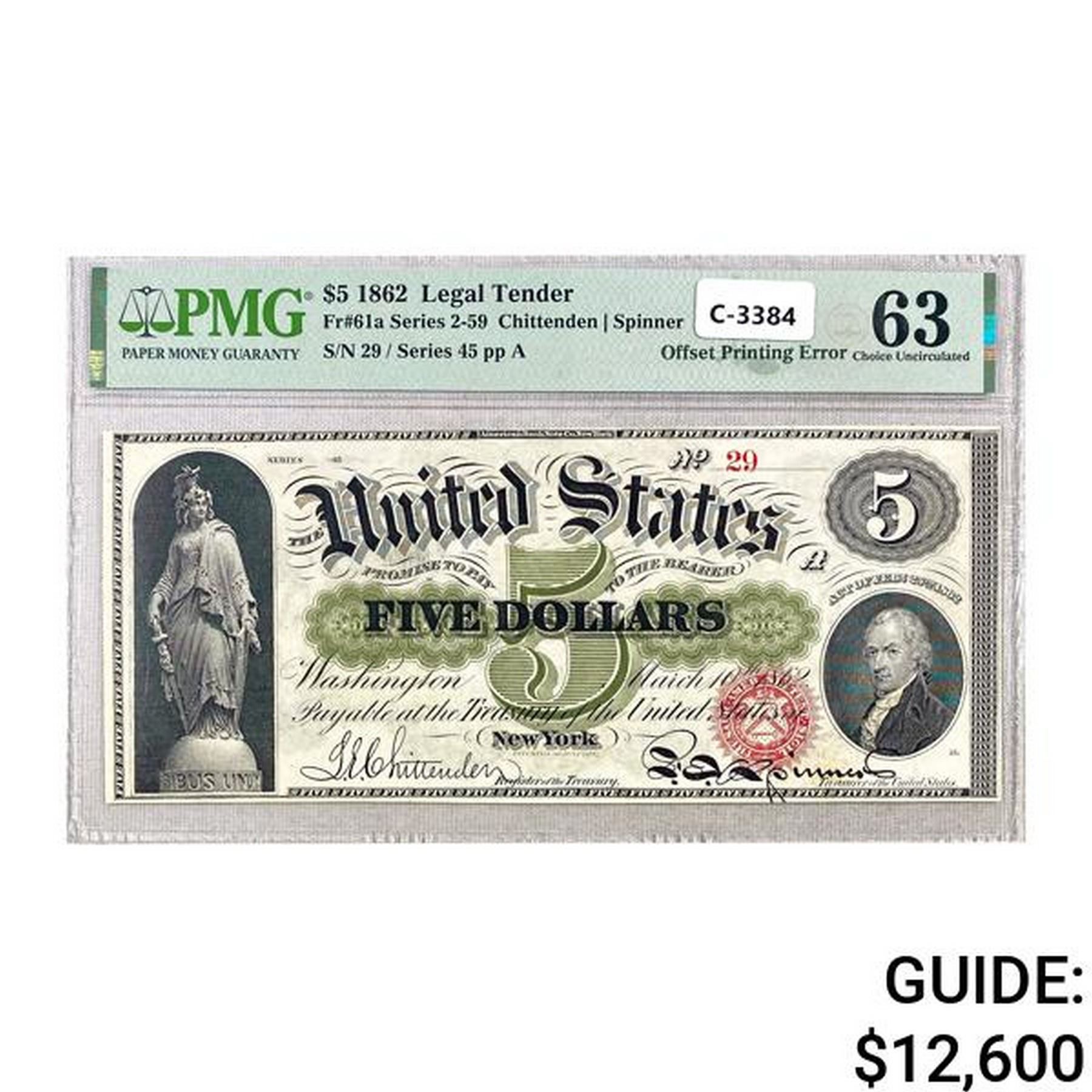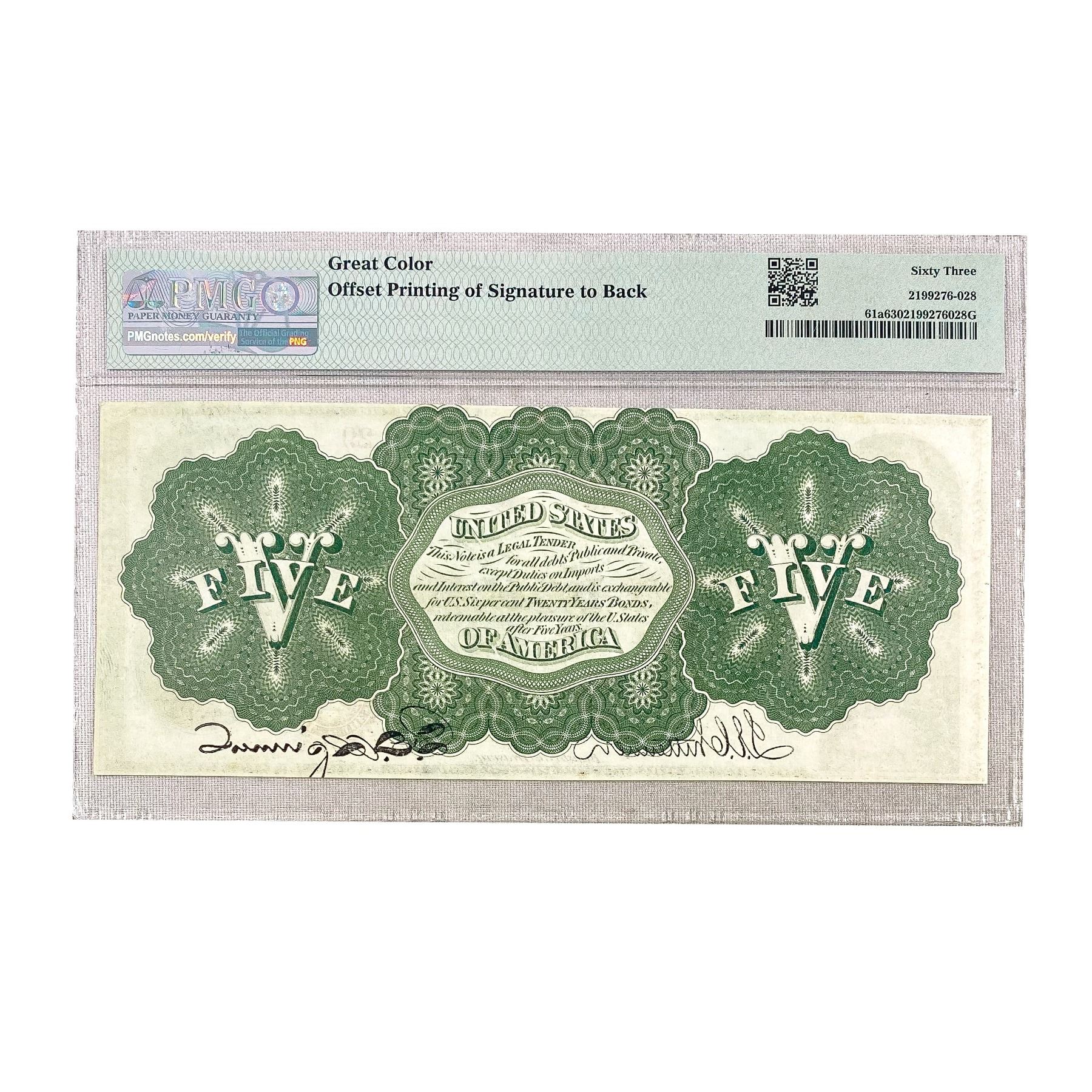 1862 $5 LEGAL TENDER UNITED STATES NOTE GREAT COL