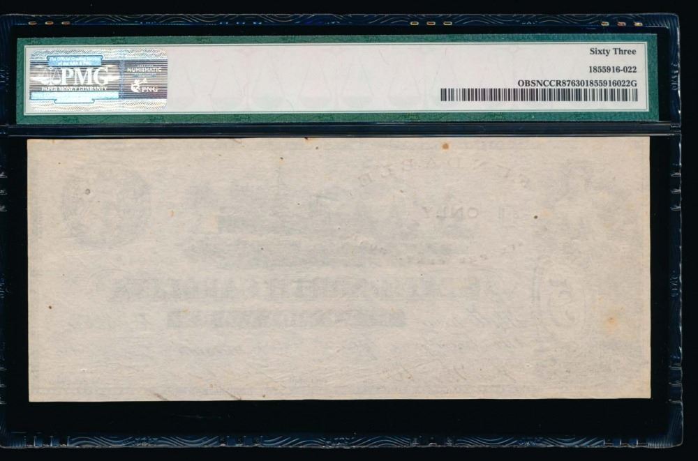One 1862 $5 Raleigh NC Obsolete Note PMG 63.