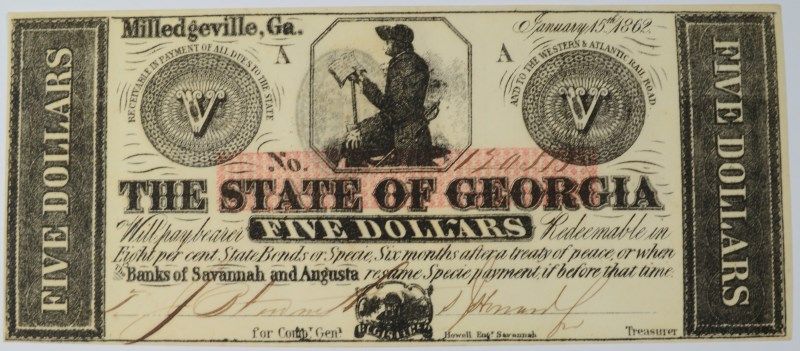 1862 $5 STATE OF GEORGIA (MILLEDGEVILLE, GA)