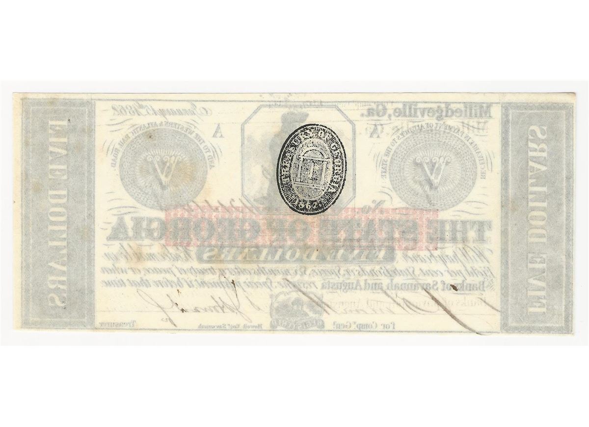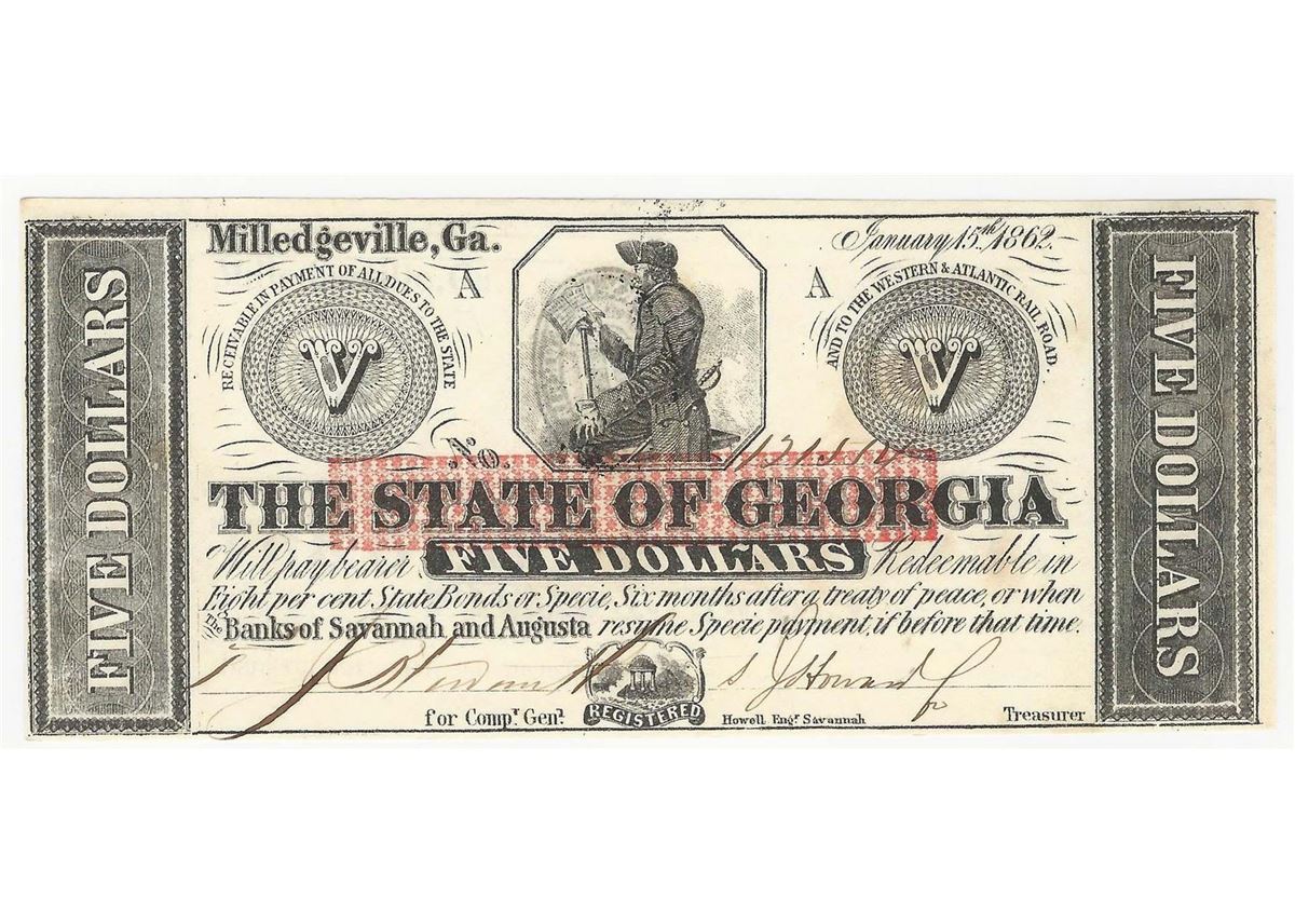 One 1862 $5 The State of Georgia Obsolete Note.