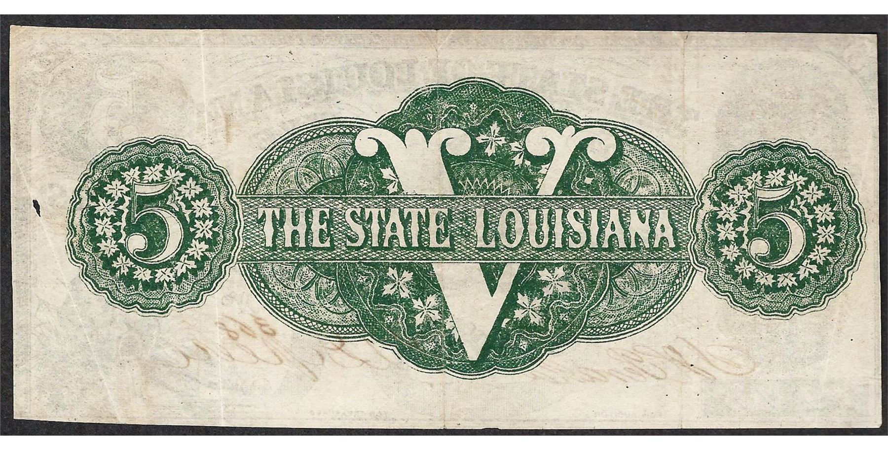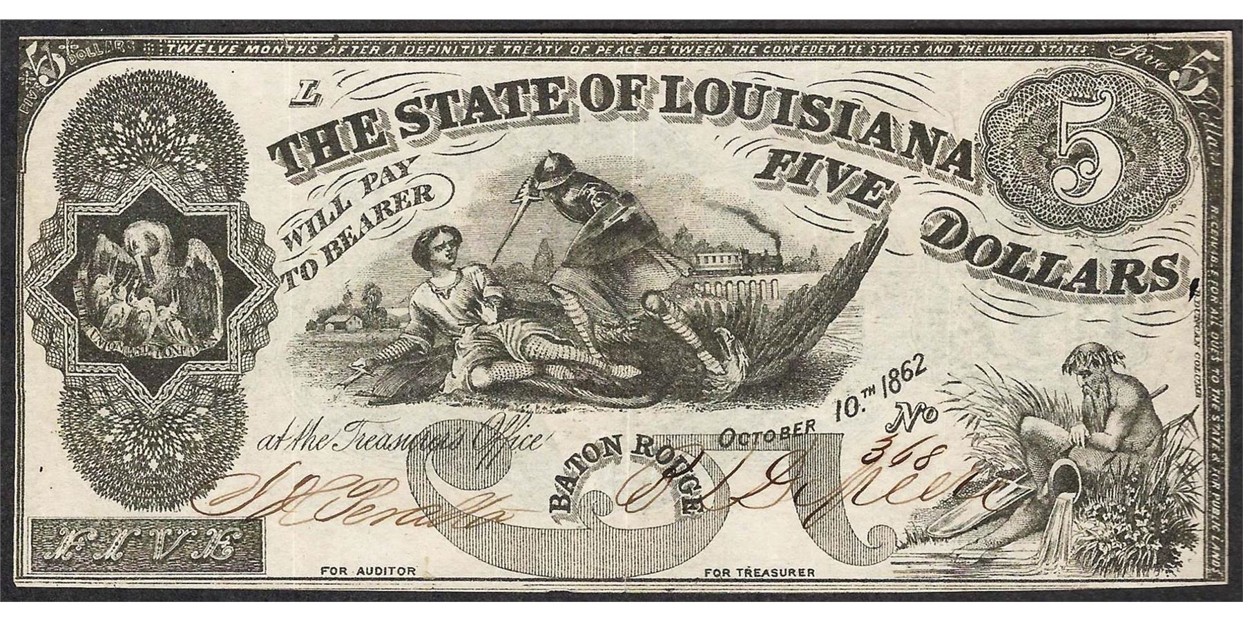 One 1862 $5 The State of Louisiana Obsolete Note.