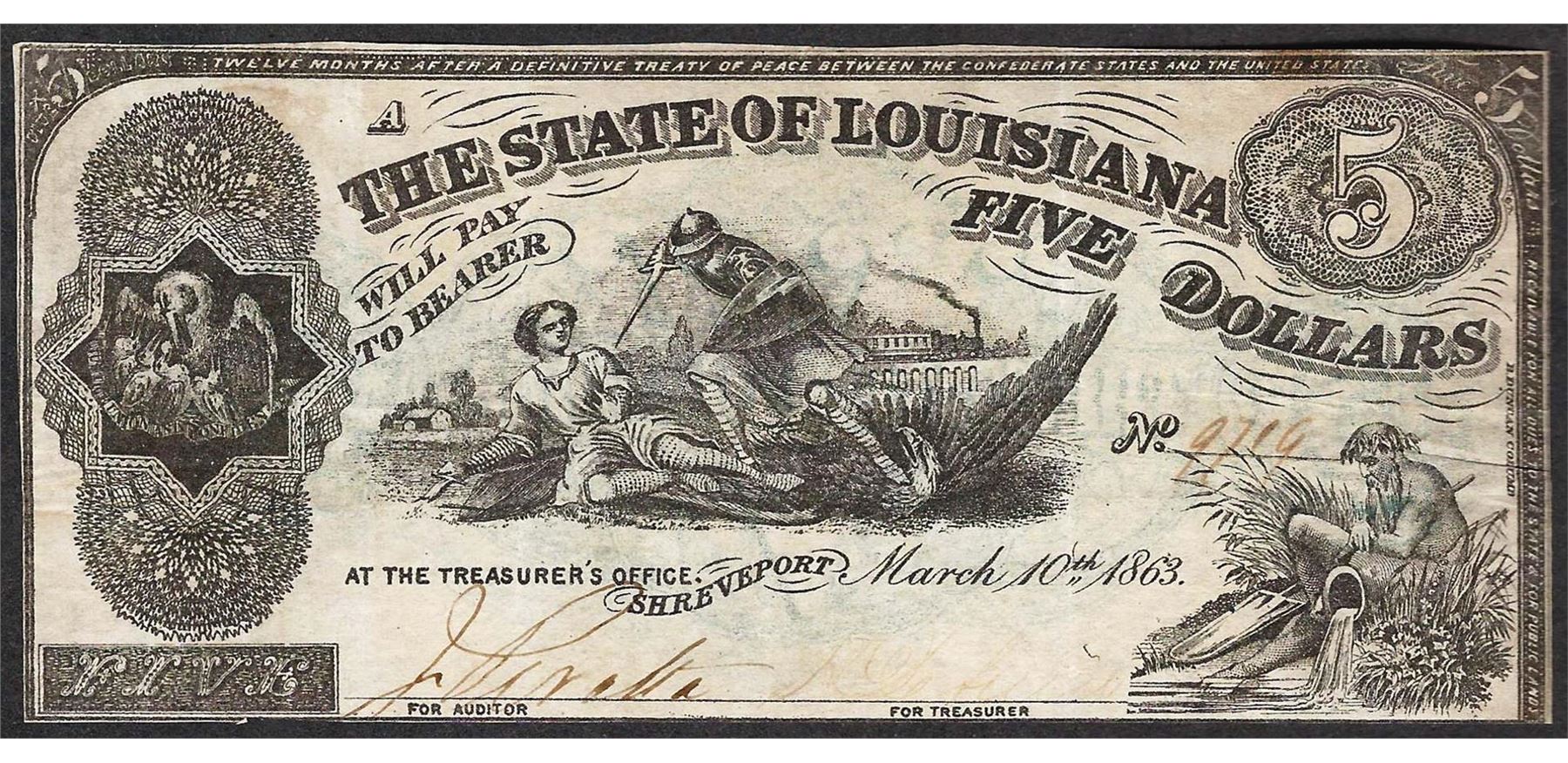 One 1862 $5 The State of Louisiana Obsolete Note.
