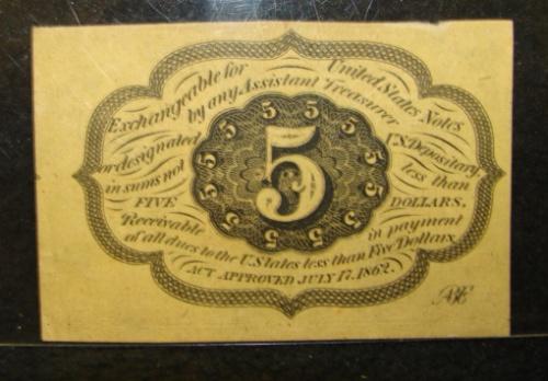 1862 5¢ U.S. POSTAGE CURRENCY NOTE.
